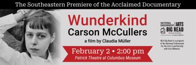 As a part of their opening celebration of NEA BIG READ COLUMBUS: WHERE WE LIVE, the Chattahoochee Valley Libraries and the Carson McCullers Center for Writers and Musicians at Columbus State University are pleased to invite you to the Southeastern premiere of the new documentary Wunderkind: Carson McCullers.